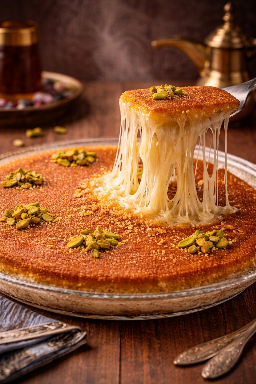 Each slice of knafeh invites you into a world of culinary artistry, where tradition meets elegant indulgence.